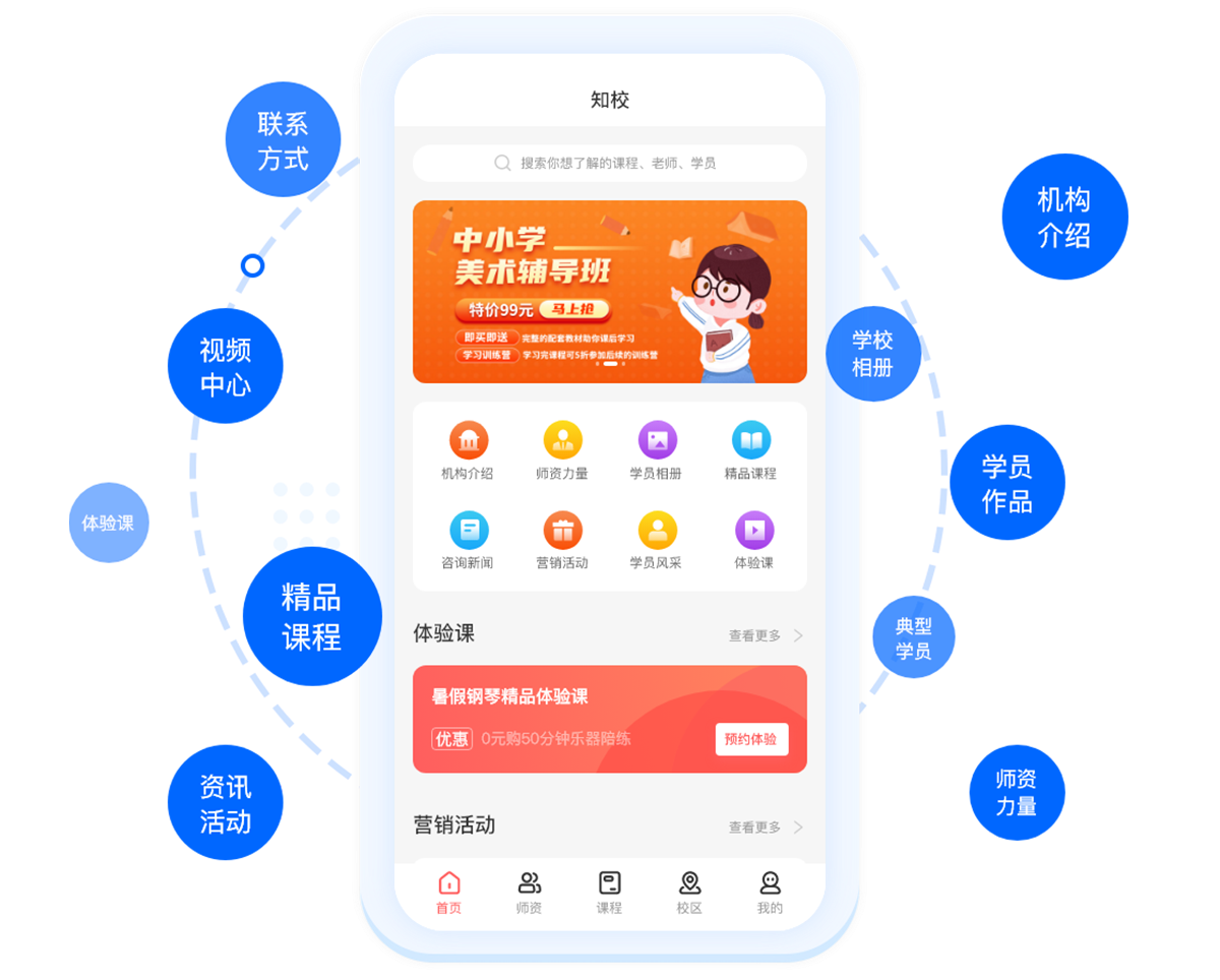 簡介/課程/師資/資訊等10幾個(gè)欄目,任意組合