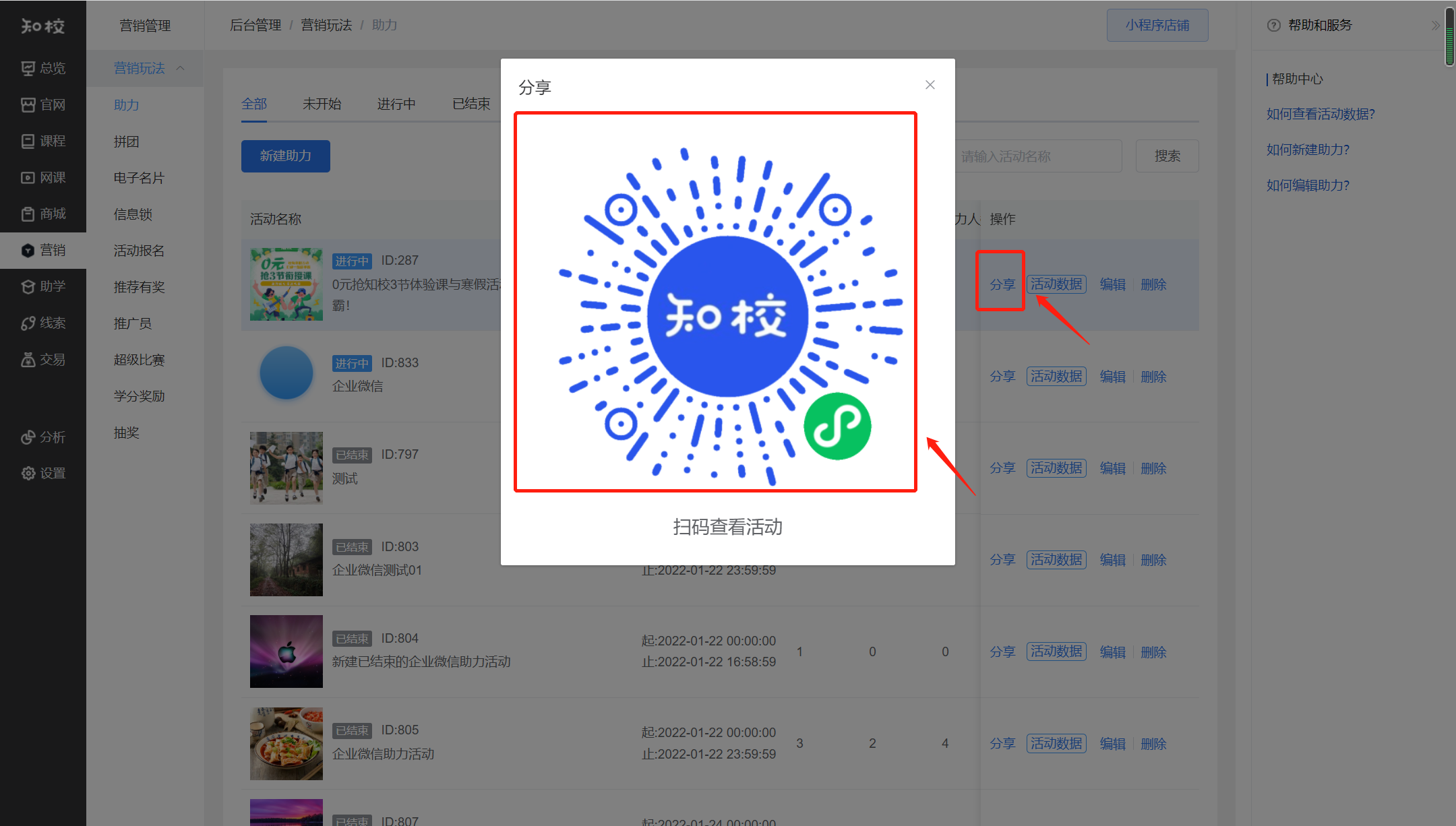 6.營(yíng)銷(xiāo)工具增加分享二維碼,掃碼可查看活動(dòng)