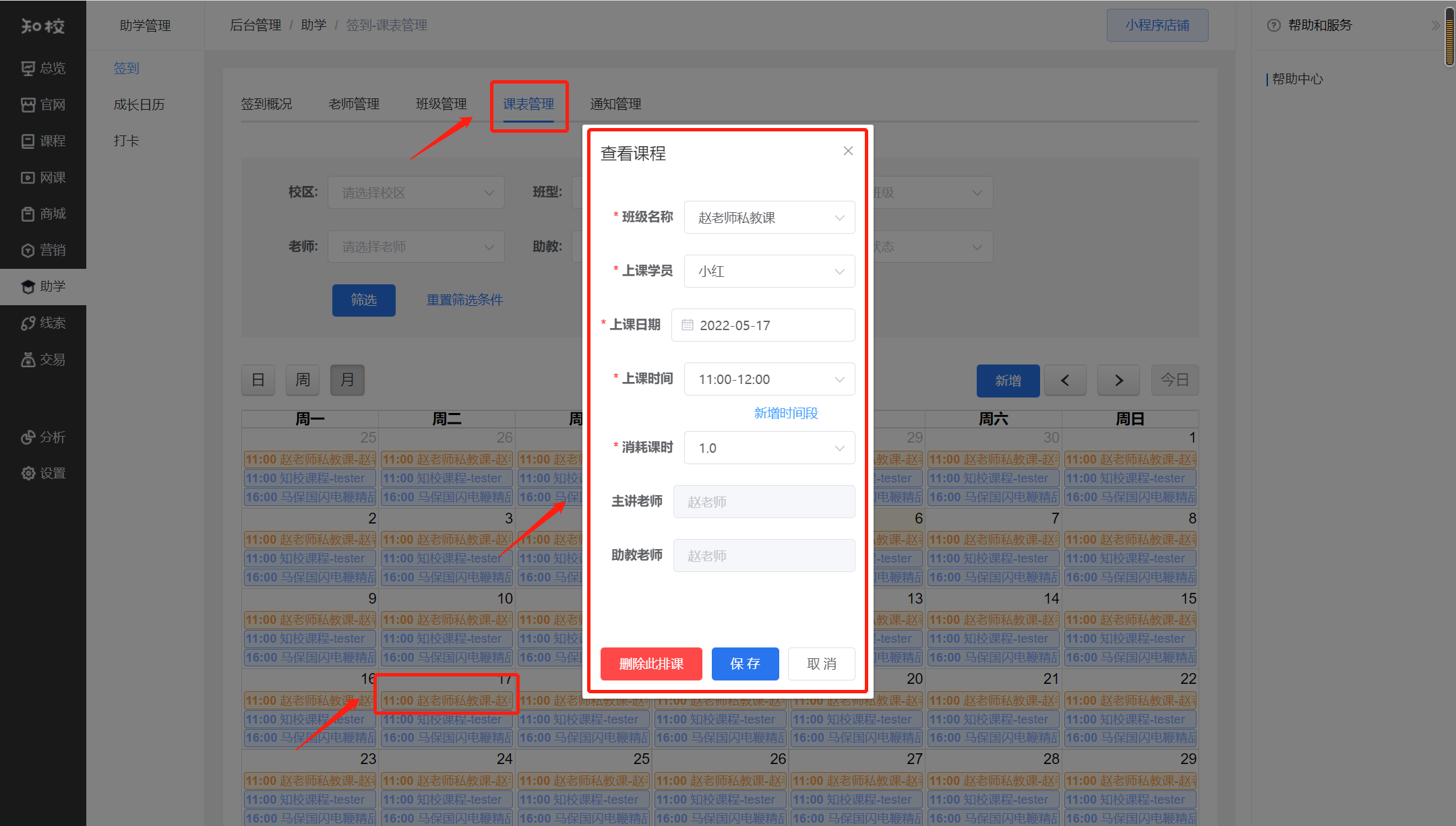 點(diǎn)擊“某節(jié)課程”,可以直接修改這節(jié)課程。