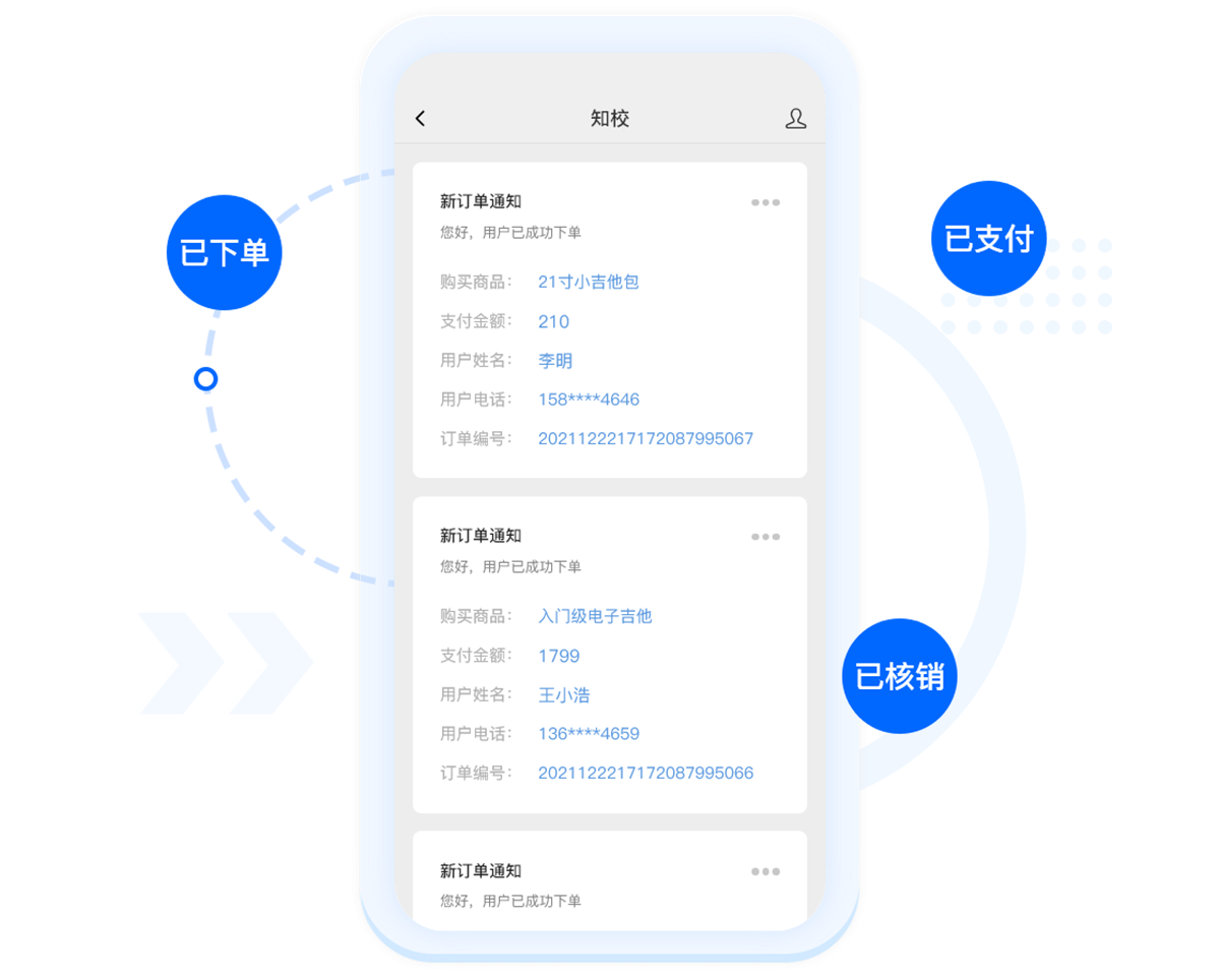 有新的訂單產(chǎn)生,微信實時收到提醒,不錯過每一筆交易