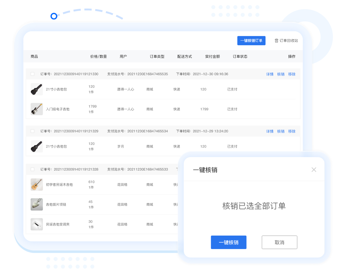 支持設(shè)置快遞/自取,后臺批量一鍵核銷
